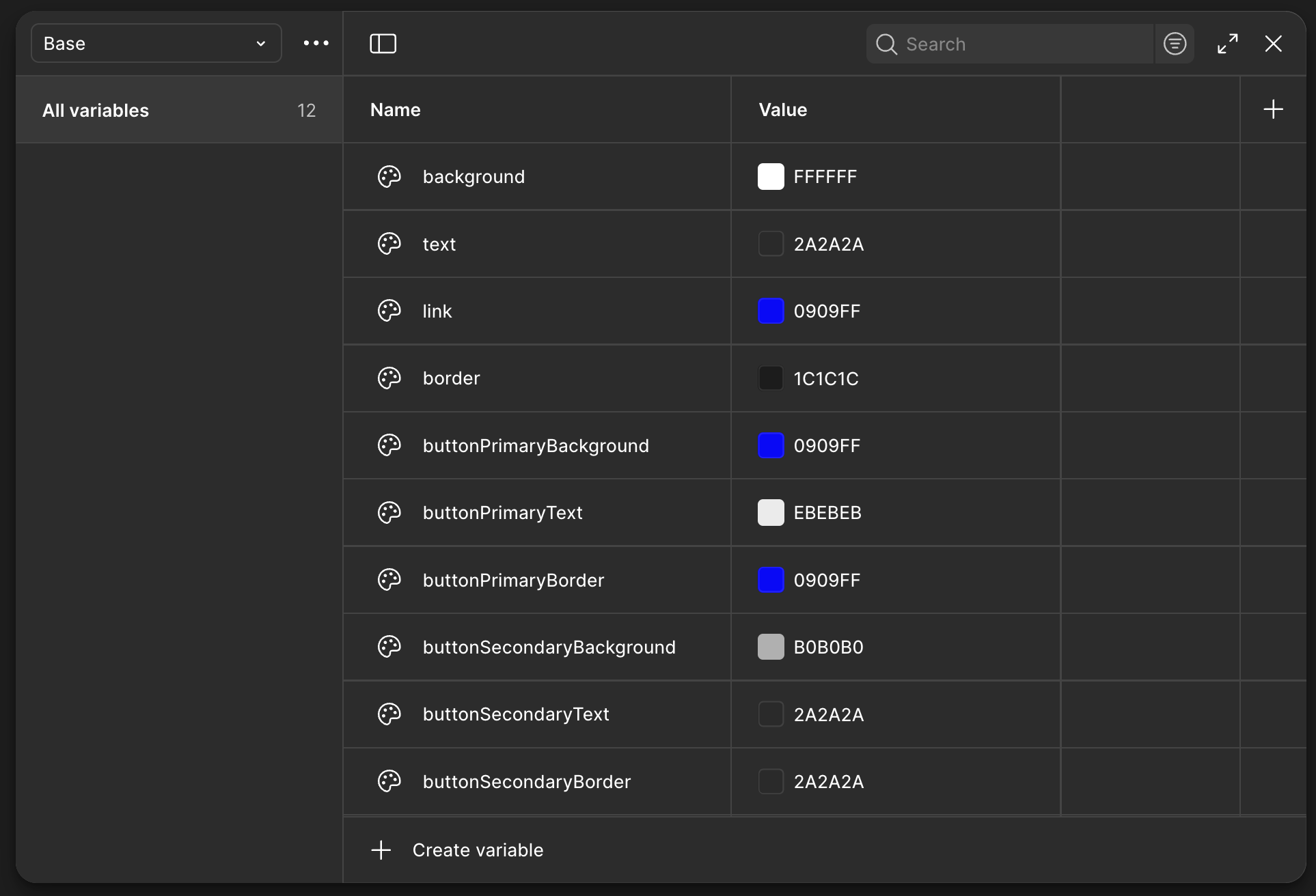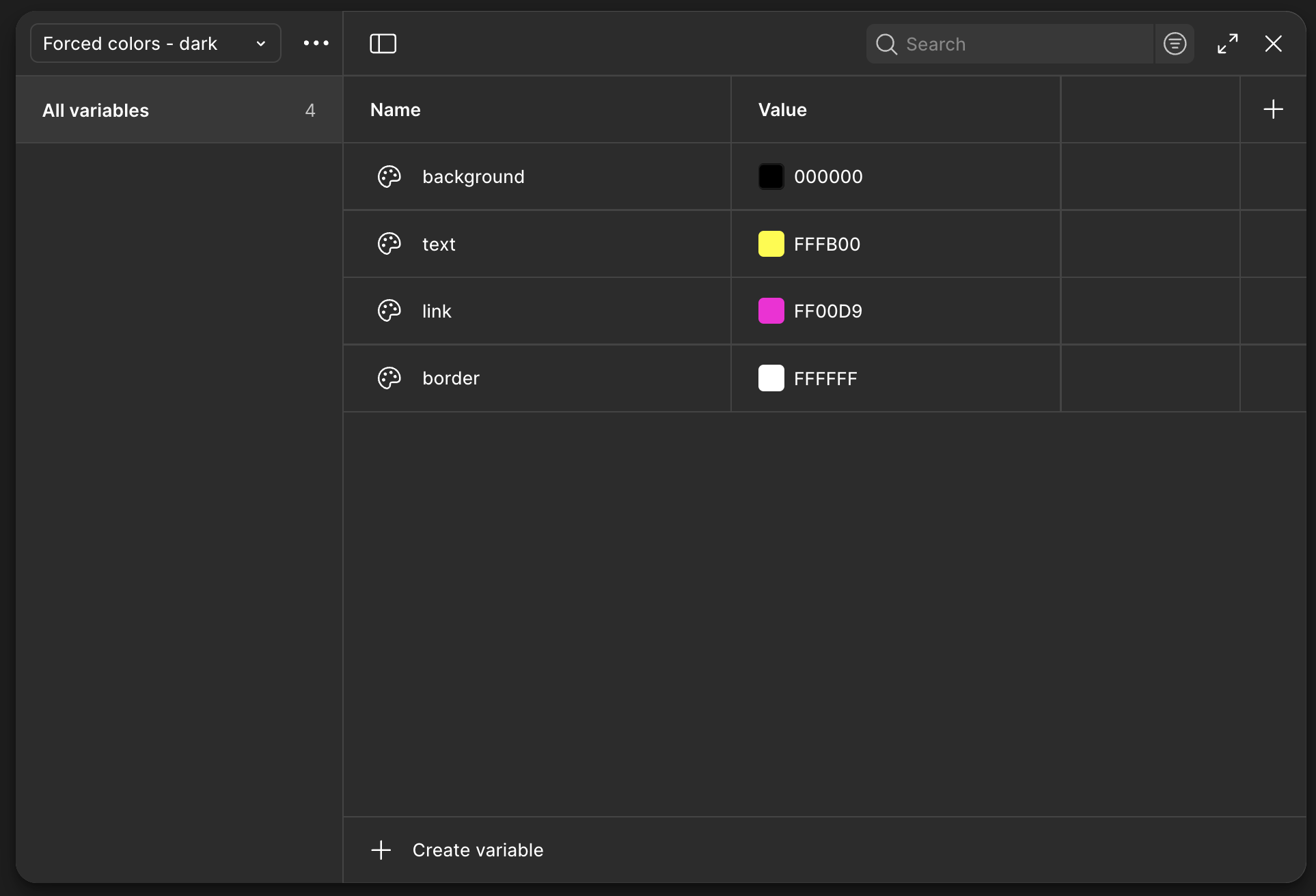 Add Figma variables for each CSS system color. Use variable collections or variable modes to organize them.